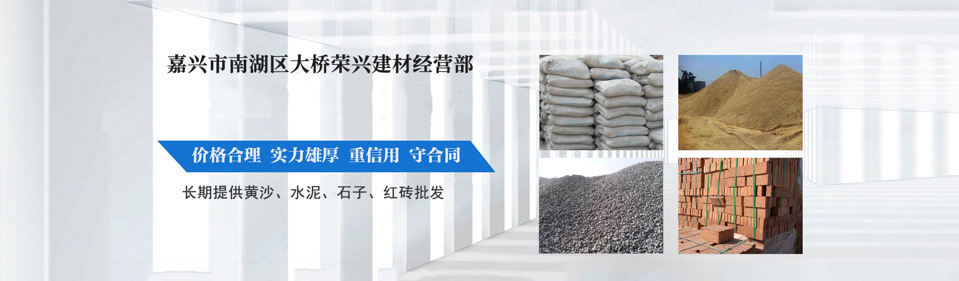 嘉兴市南湖区大桥荣兴建材经营部有多年的建材运输批发销售经验,码头直销批发黄沙,水泥,石子,红砖等各种基础建材,提供袋装黄沙水泥包上楼一站式服务,质量保证,价格合理。